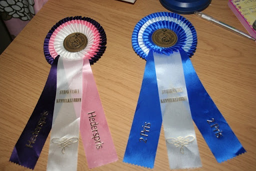 Jo, det gick faktiskt jättebra. När vi var inne i ringen var jag jättespänd. Men vår domare denna dag, Karin Eriksson var jättesnäll mot mig. Hon sa precis till mig hur jag skulle göra och så. Tills sist så kom vi tvåa med hedrespris. Förstå hur glad jag blev. Vi fick ett Hp!!! Jippi!!! Ett hedrespris ges till mycket lovande unghundar. Så här lät omdömmet om Pima denna dag: